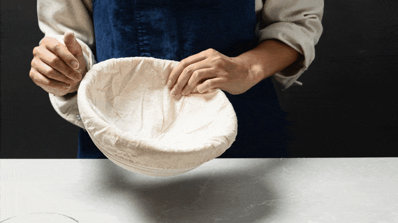 Each bread should be proofed in the basket. Use a spray gun to lightly mist the banneton with water. Rinse the cloth and repeat to remove any soapy residue.